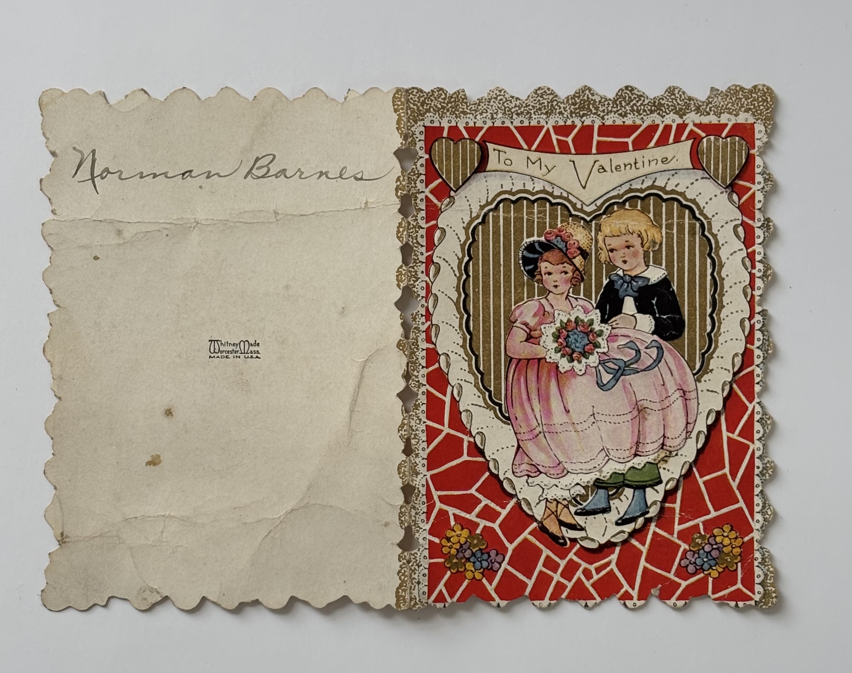 Valentines Card, either sent to or sent from Norman Barnes